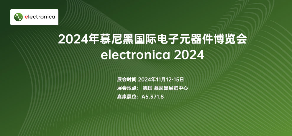 德國慕尼黑國際電子元器件展展覽會,是歐洲及世界上規(guī)模最大和影響最廣的電子元器件專業(yè)博覽會,從組件到系統(tǒng),從應(yīng)用到服務(wù),electronica展品范圍覆蓋了整個電子產(chǎn)業(yè)的技術(shù)、產(chǎn)品和處理過程。展會緊緊把握智能網(wǎng)聯(lián)汽車、物聯(lián)網(wǎng)、工業(yè)自動化、5G通訊等熱門應(yīng)用市場,嘉康電子積極參展,熱忱歡迎來自全球的合作伙伴和行業(yè)精英。